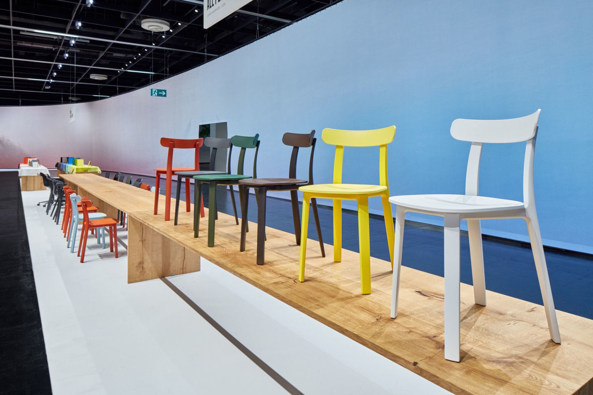 Besonderes Designmerkmal ist außerdem die Farbgebung: Bei allen Farbausführungen besitzt das Gestell einen minimal dunkleren Ton als Sitz- und Rückenlehne. Diese Two-Tone-Farbkombination von Vitra macht den Designer Stuhl unverwechselbar.