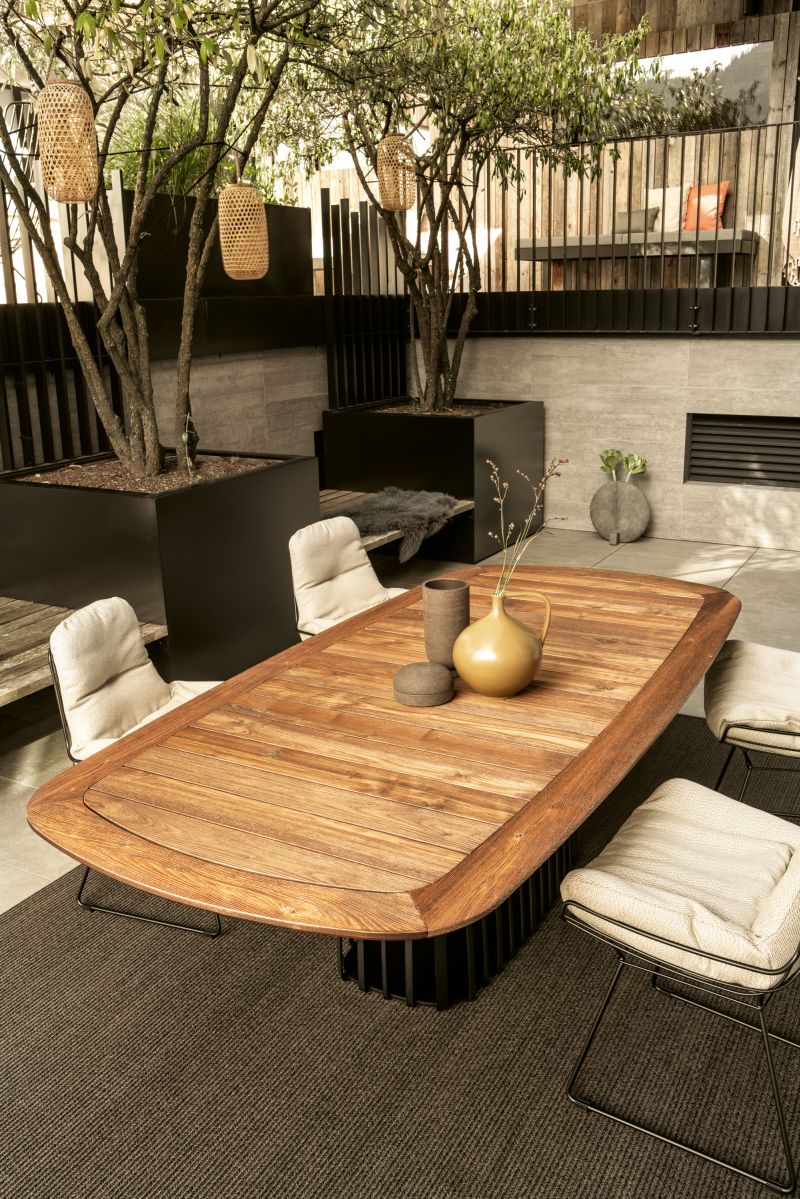 Eine Hommage an die hanseatische Metropole Hamburg. Der BC 07 Basket Holz Tisch in Bootsform von Janua. Die Holzlammelen der Oberfläche sorgen für die Wetterfestigkeit im Außenbereich. Der aus gebürsteten Kastanienholz bestehende Tisch sorgt durch seine Konstruktion, dass kein Wasser auf der Tischfläche stehen bleibt. Gestalten Sie Ihre Outdoor-Oase mit dem BC 07 Basket Outdoor Tisch von Janua und erleben Sie die perfekte Kombination aus Design, Qualität und Nachhaltigkeit. Lassen Sie sich von der Schönheit und Funktionalität dieses einzigartigen Tisches begeistern und genießen Sie unvergessliche Momente im Freien.