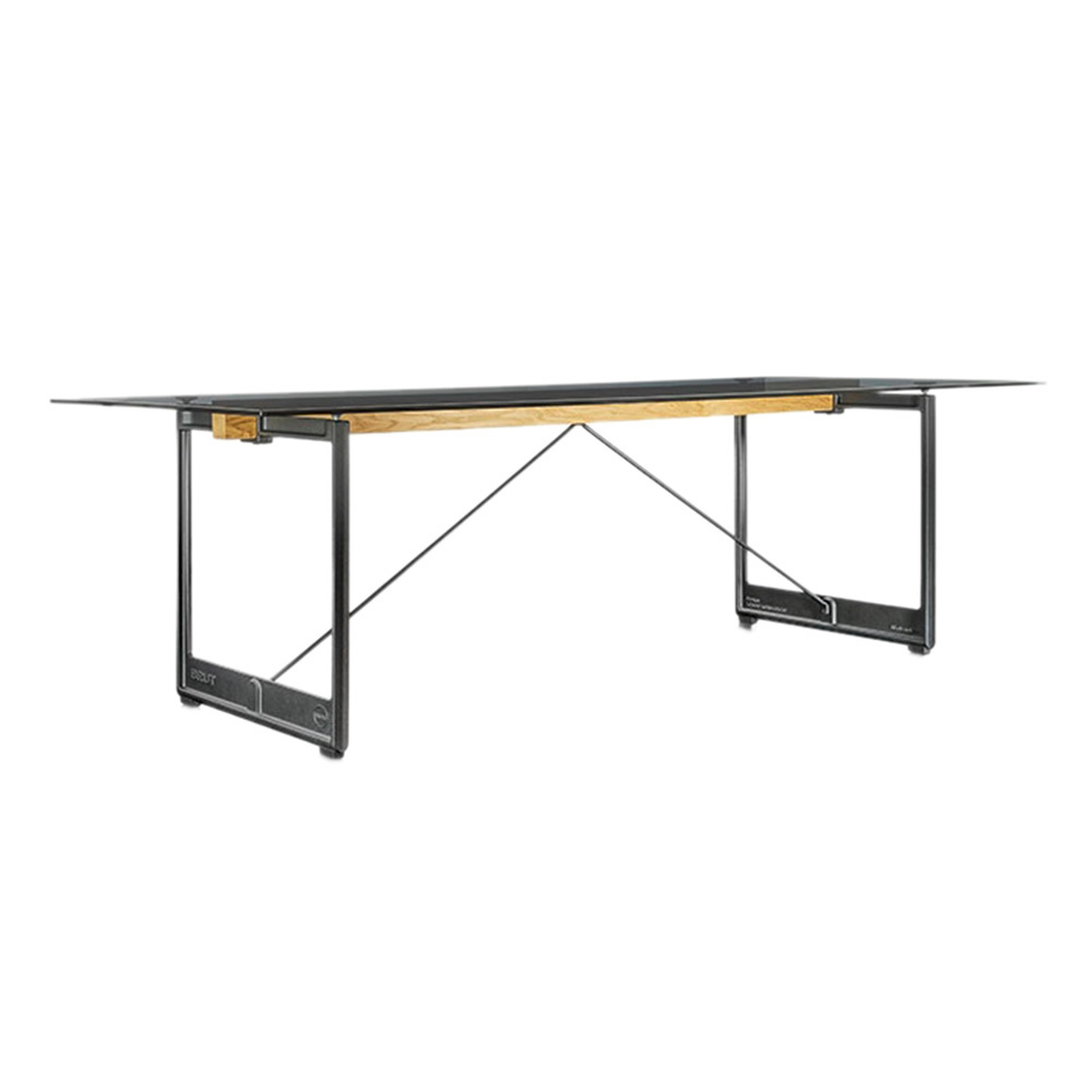 Stardesigner Konstantin Grcic ist mit Brut ein aufregender Tisch gelungen, ein gusseisernes Gestell trifft auf einen schmalen Balken aus massive Eiche und die wiederum auf eine Rauchtischplatte. Was für eine tolle Kombination! Wer also einen langen wie extravaganten Design-Tisch im Industrial-Design-Stil zum Konferieren oder für den Essbereich sucht, liegt hier genau richtig! Brut hat die Leichtigkeit und Eleganz, die man im Industrial-Design nicht erwartet. Genau für diese beiden Komponenten steht aber Designer Konstantin Grcic, der für die italienische Firma Magis schon viele Highlights gesetzt hat. Grcic gerlang schon früh der internationale Durchbruch mit seiner für die Firma Flos entworfenen Leuchte Mayday, ein Klassiker in der Welt der Designer, die in ständigen Ausstellungen des Museums of Modern Art und Centre Pomidou in Paris bestaunt werden kann.