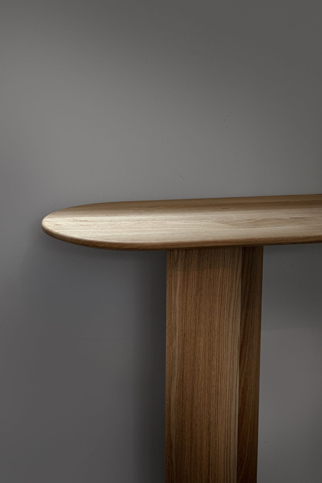 Curtain misst 200 cm in der Breite, 41 cm in der Tiefe und 90 cm in der Höhe. Der Konsolentisch wird vollständig aus Massivholz gefertigt und ist in den Ausführungen Eiche und Amerikanischer Nussbaum erhältlich. Die Oberfläche ist mit natürlichem Hartwachsöl behandelt.