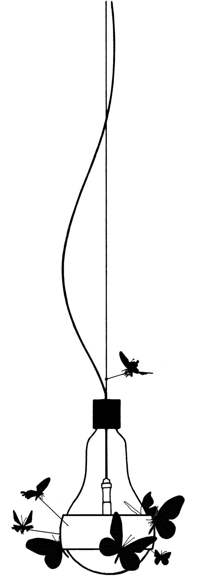 Im Mittelpunkt dieses außergewöhnlichen Lichtobjekts steht eine überdimensionierte Glühbirne, umgeben von einem blendend weißen Ring. Doch das ist nur der Anfang. Lassen Sie Ihren Blick weiter schweifen und entdecken Sie die zehn handgefertigten Insektenmodelle, die um den transparenten Glaskolben schwirren.