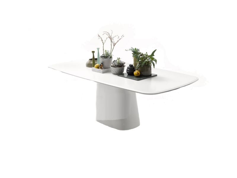 Weißer Conic Tisch von Cor mit Pflanzen und Dekorationen auf der Tischplatte.