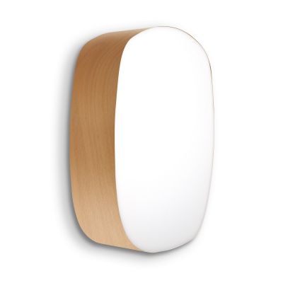 Guijarro G5 Wandleuchte von LZF Lamps: Ovale Lampe mit Holzrahmen und weißem Diffusor.