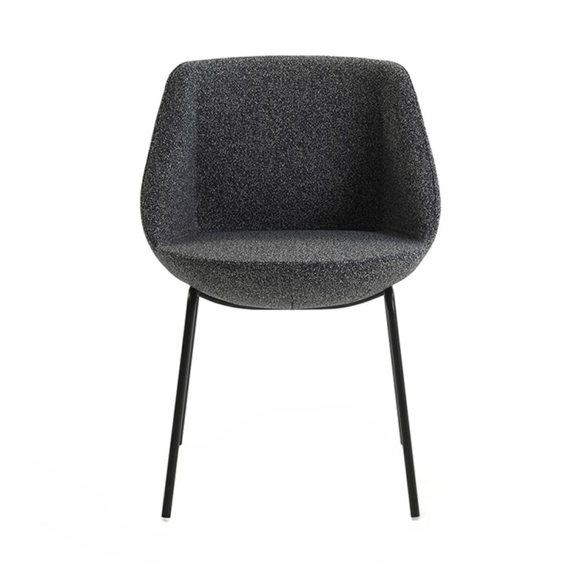Magnum Stuhl mit anthrazitfarbenem Stoffbezug und Stahlgestell von Sancal, Frontansicht.