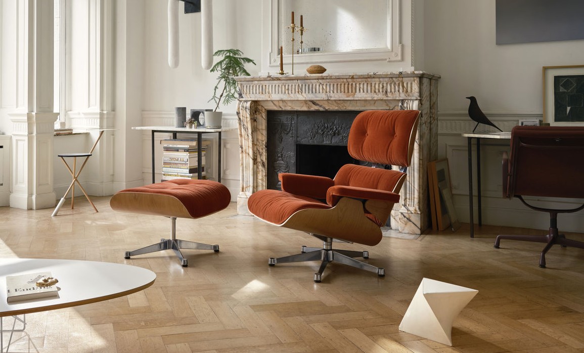 Charles und Ray Eames haben 1956 mit dem Eames Lounge Chair einen Designklassiker geschaffen, der heute in zahlreichen Varianten erhältlich ist. Die ursprüngliche Version verfügte über eine Schalung aus Palisander, schwarzes Leder und schwarze Seiten. Eine optisch ähnliche, aber etwas preisgünstigere Alternative ist die Variante mit Kirschbaumfurnier.