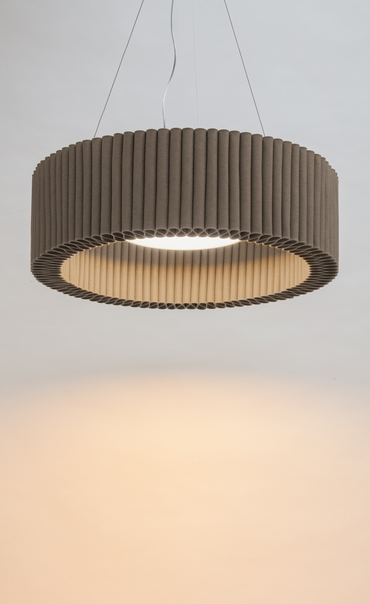 • Schallabsorbierende Designerleuchte aus reinem Wollfilz