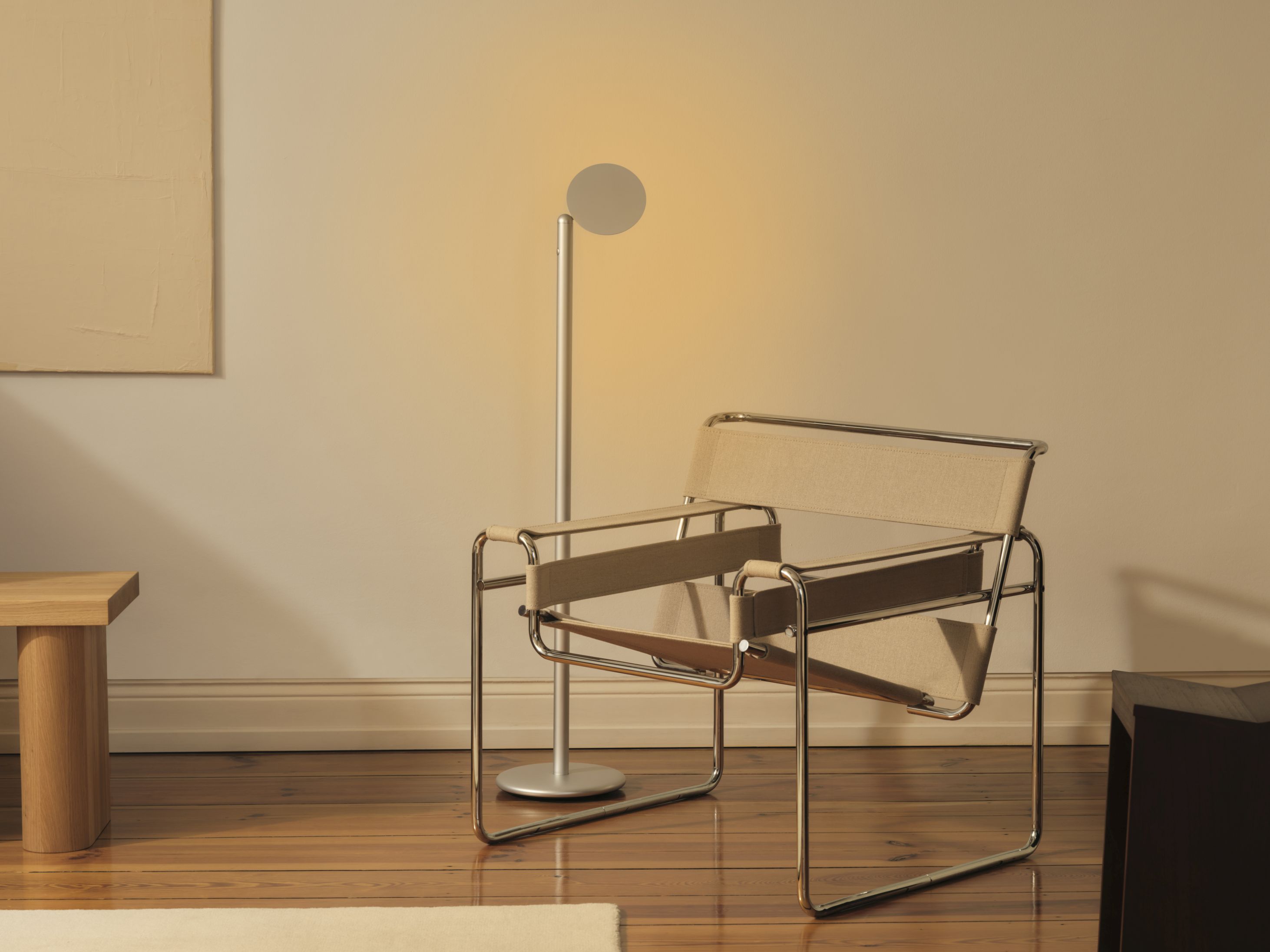 Das Design der Tip Floor Lamp ist durch Einfachheit und Funktionalität geprägt. Durch den verstellbaren Kopf kann entweder direktes Licht oder auch Umgebungslicht eingestellt werden.