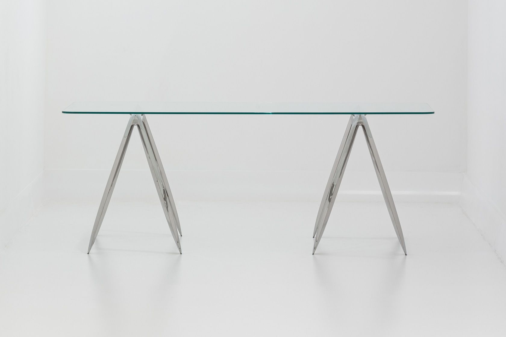 Das Tischgestell wird aus Stahl gefertigt. Das Produkt wird auf Bestellung gefertigt und kann aufgrund seiner Herstellungsmethode in Gewicht, Form und Abmessungen variieren.