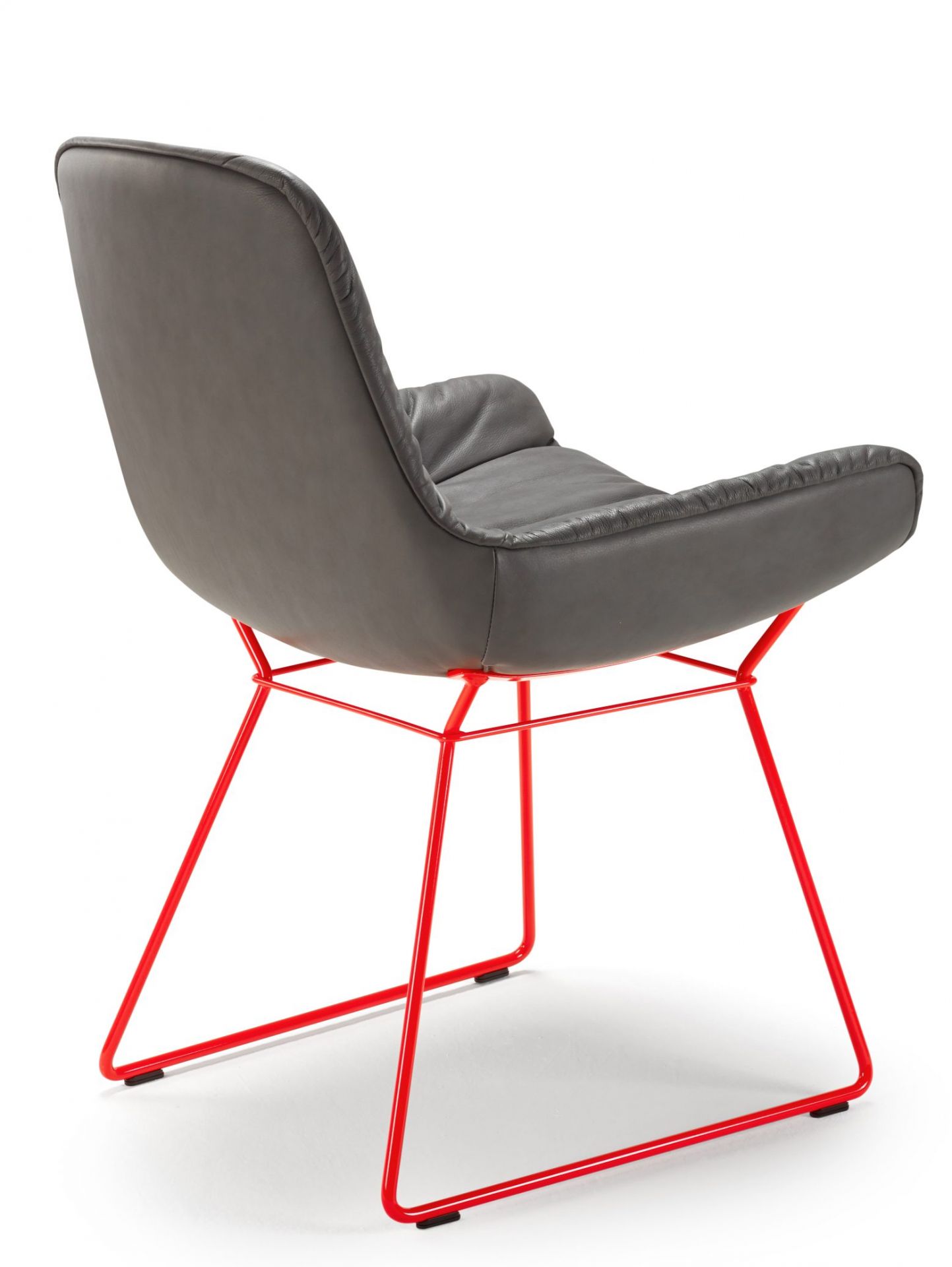 Auf diese weiche Polsterung setzt man sich doch gern – der Leya von Freifrau Sitzmöbelmanufaktur vereint ein filigranes Drahtgestell mit einer bequemen und straff gepolsterten Außenschale.