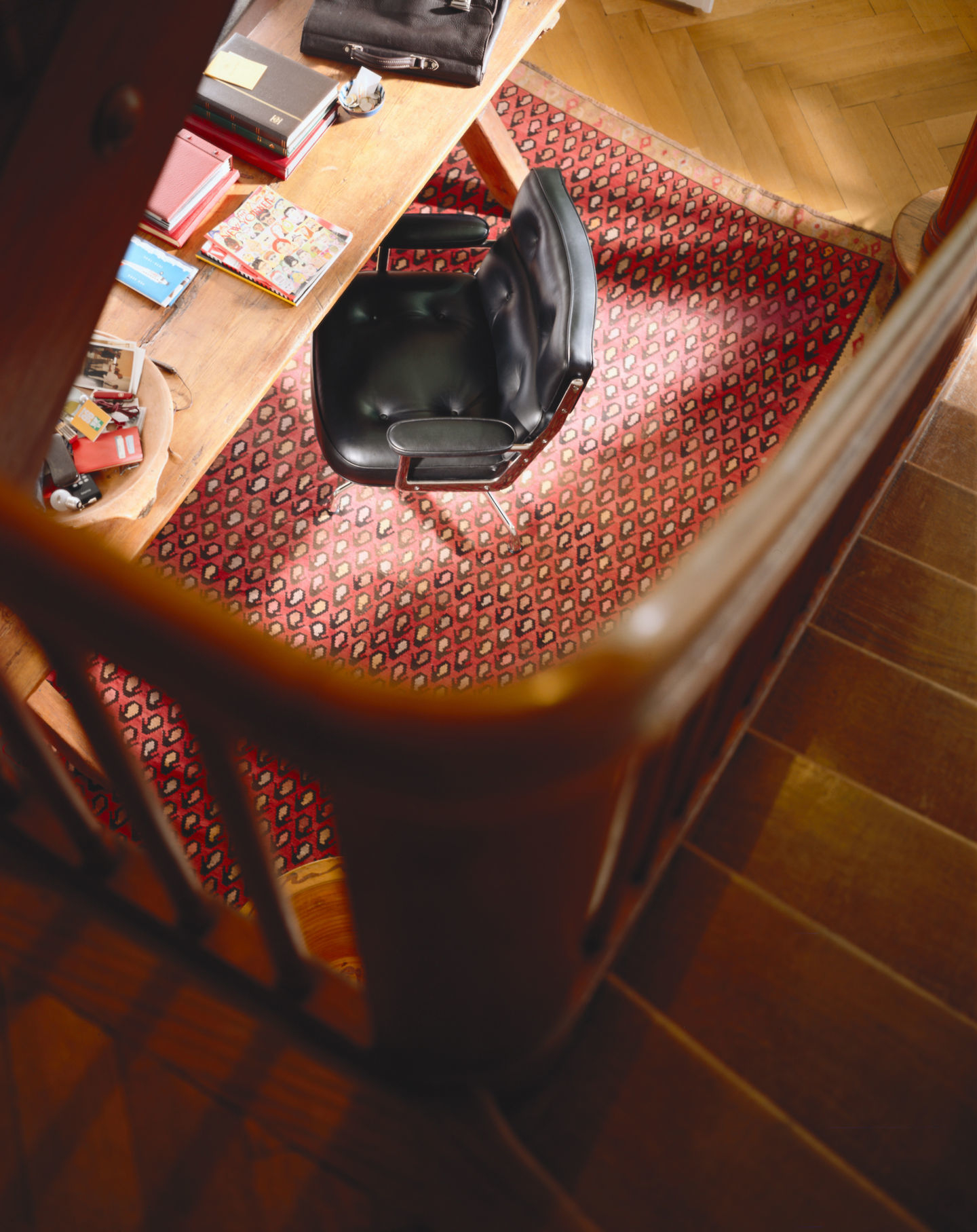 Die Seitenteile der Rückenlehne und des Sitzes sowie das Untergestell sind aus Aluminium-Druckguss gefertigt. Die Armlehnen sind wie die Sitz- und Rückenfläche mit Leder bezogen. Er kann mit harten Rollen für Teppichboden und weichen Rollen für harte Böden bestellt werden. Zudem verfügt der Stuhl über eine regulierbare Rückneigemechanik und lässt sich mittels einer Gasfeder stufenlos in der Höhe verstellen.