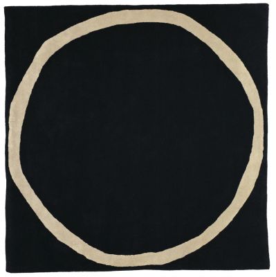 Rechteckiger Aros Teppich von Nanimarquina, schwarzer Wollteppich mit beigem Kreis, modernes Design.