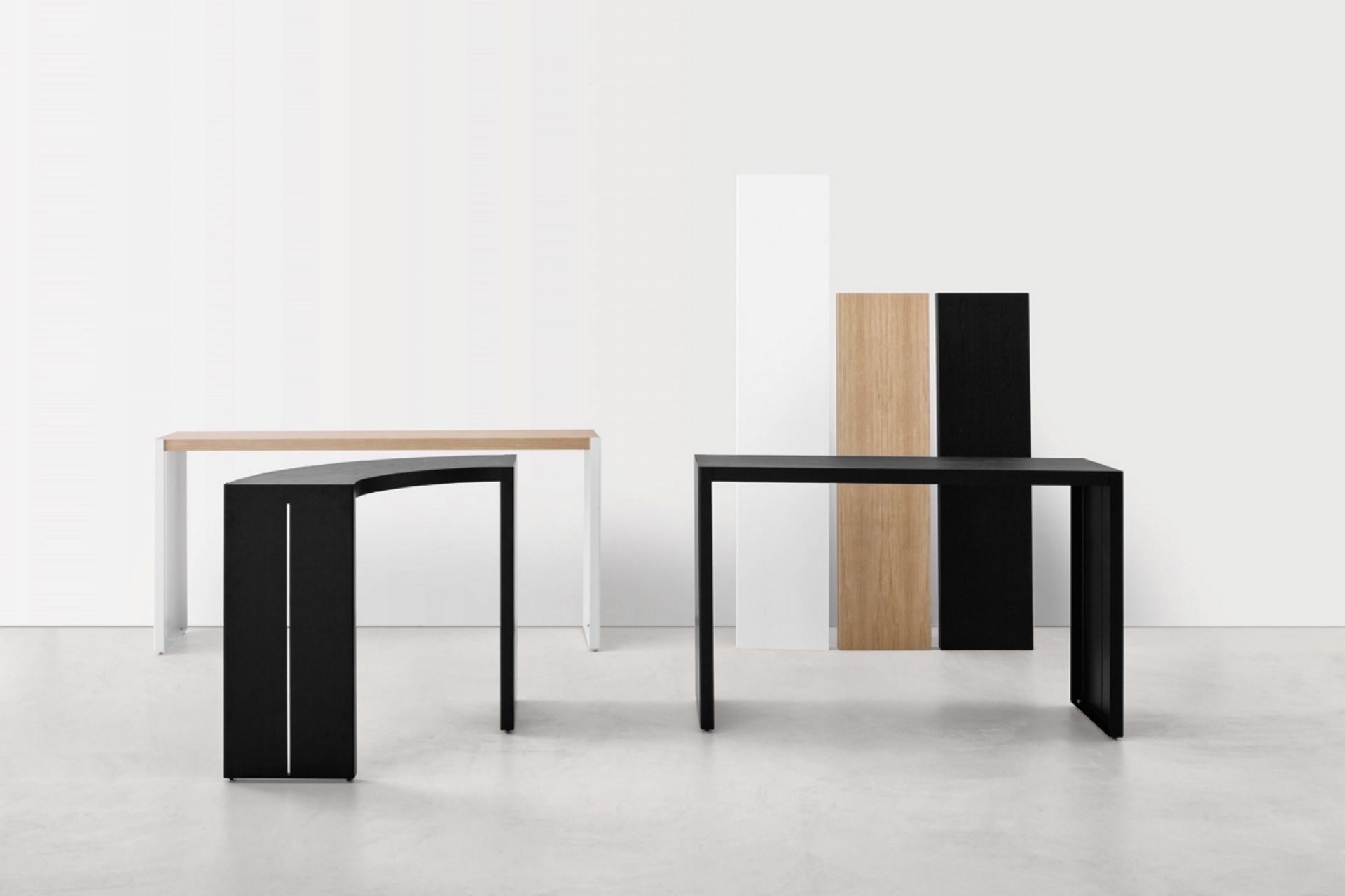 Material Beine aus pulverlackiertem Metall, Tischplatte aus Verbundplatte mit Wabenstruktur und tragendem Gerüst in Multiplex aus Birkenholz, furniert in verschiedenen Ausführungen