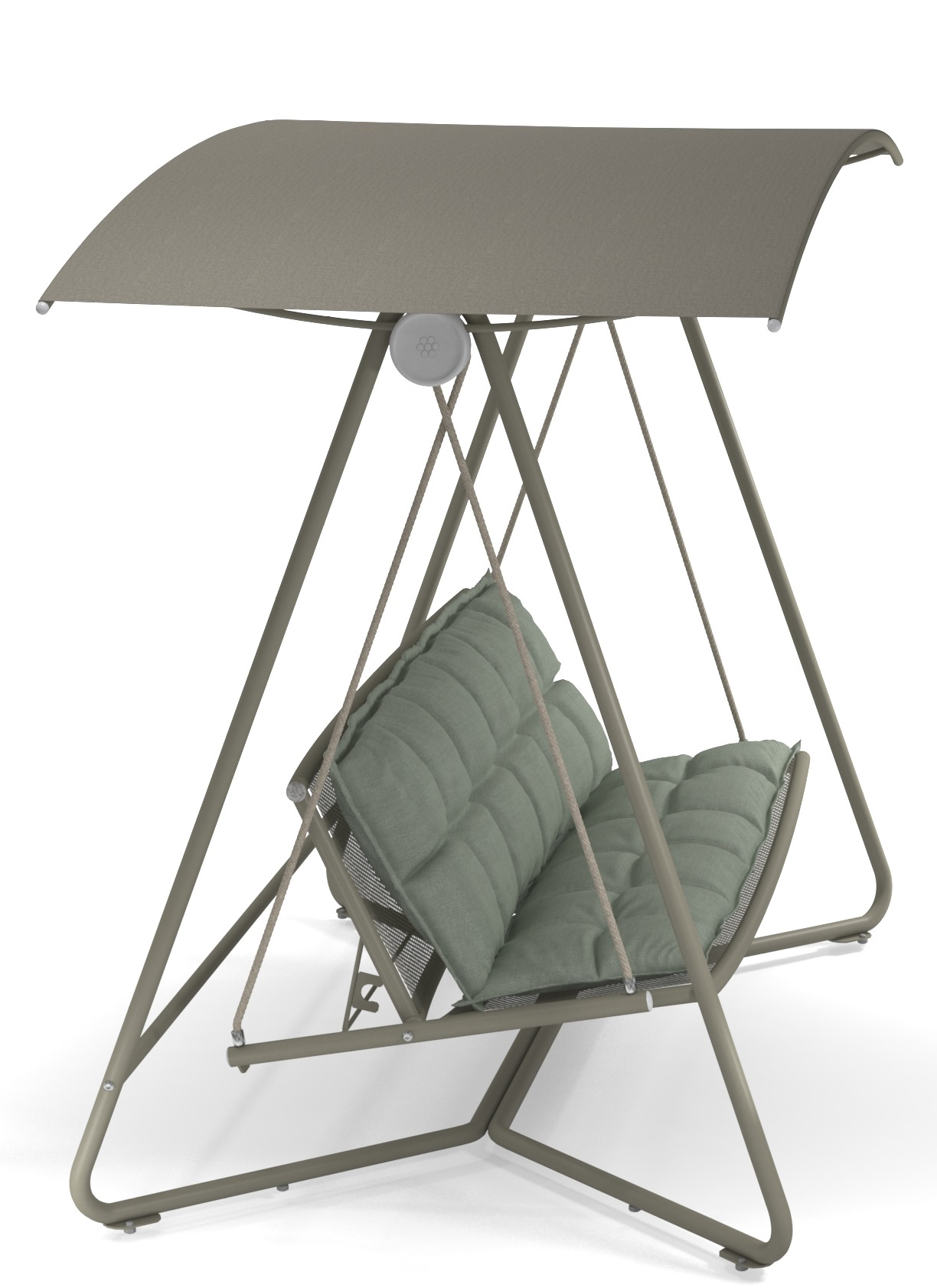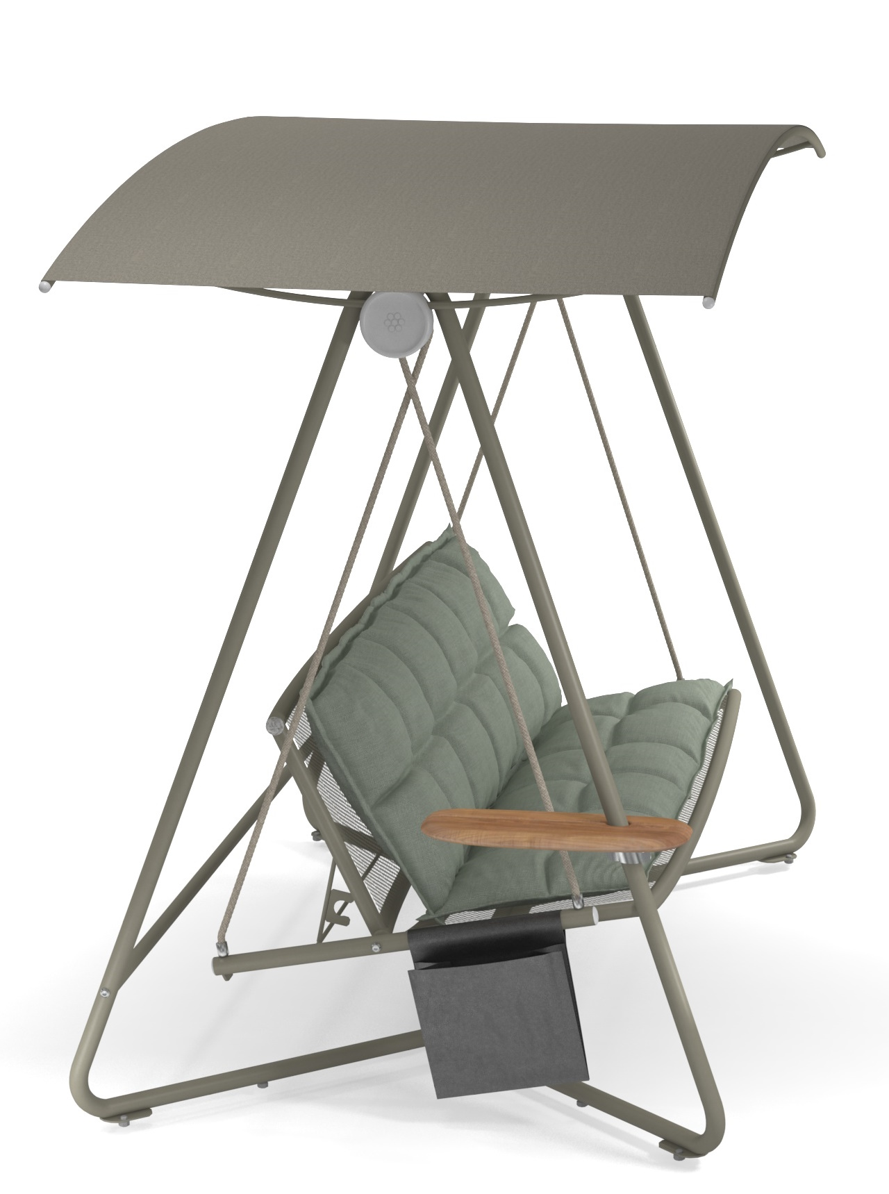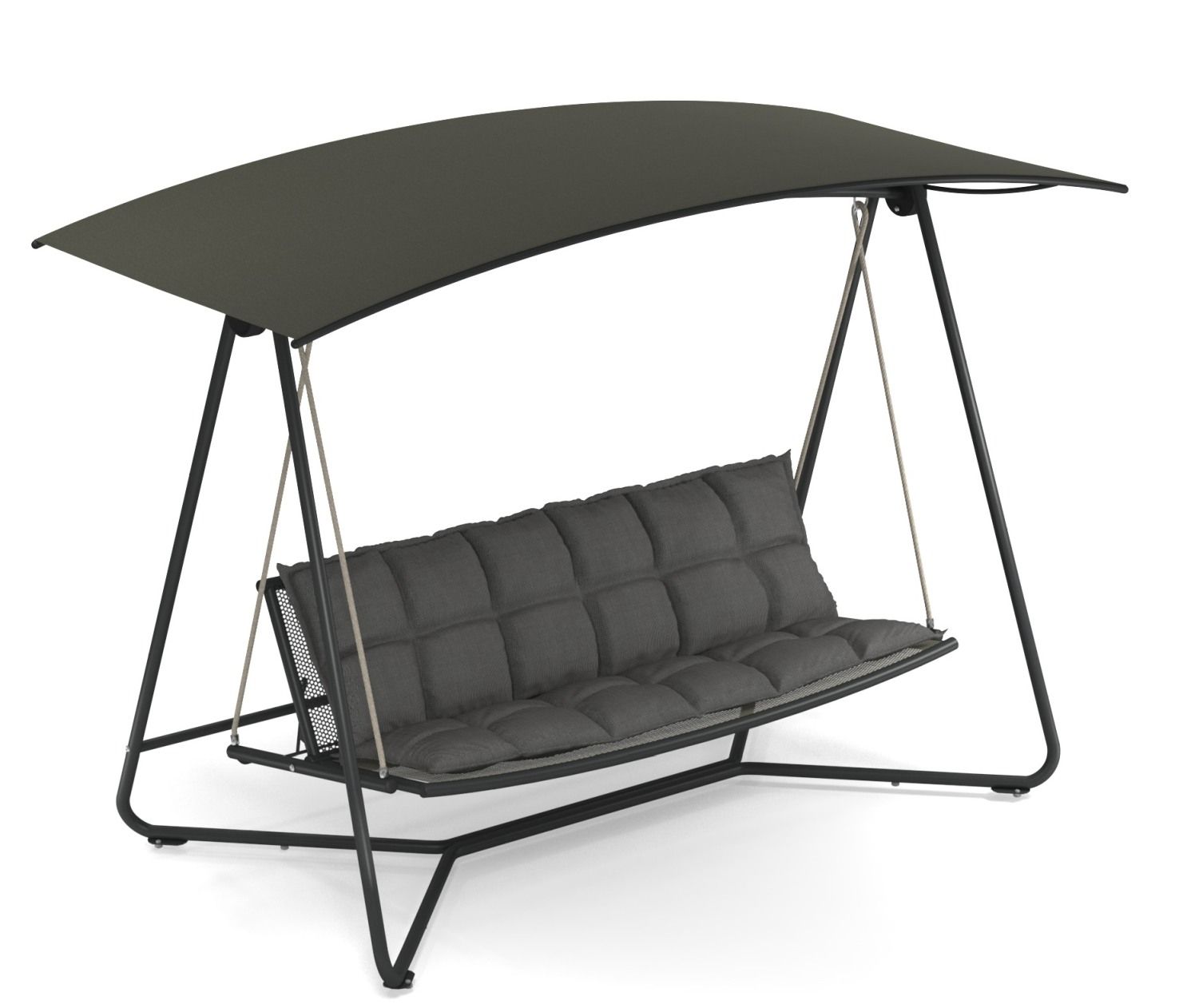 Großzügig und bequem – Reel ist ein gemütliches Schaukelsofa, das mit seiner verstellbaren Rückenlehne für perfekten Komfort sorgt. Der Sonnenschirm ist neig- und verstellbar und kann das Tageslicht auf natürliche Weise filtern. Das Design ist besonders wohlgeformt mit seiner leichten Kurve, die an ein Lächeln erinnert.