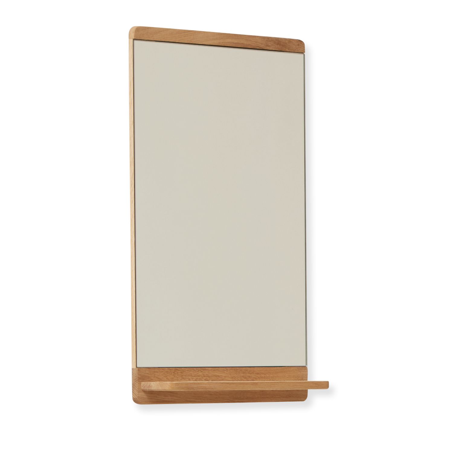 Der Glasspiegel wird von einem Rahmen aus massivem Eichenholz umfasst, bei dem Sie zwischen den Varianten geölt, weiß geölt und schwarz gebeizt wählen können. Rim misst B 40 x T 10 x H 67,5 cm und verfügt über eine schmale Ablageleiste.
