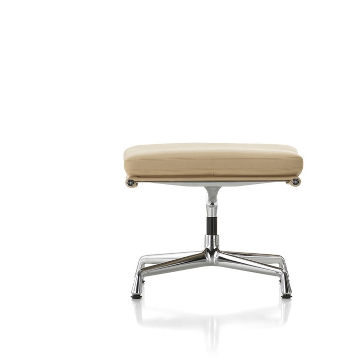 Der Soft Pad Chair EA 223 Hocker basiert auf dem Entwurf der anderen Soft Pad Chairs, die Ray & Charles Eames 1969 entwickelt haben. Daher ergänzen sich die beiden Designs perfekt und machen miteinander eine gute Figur.