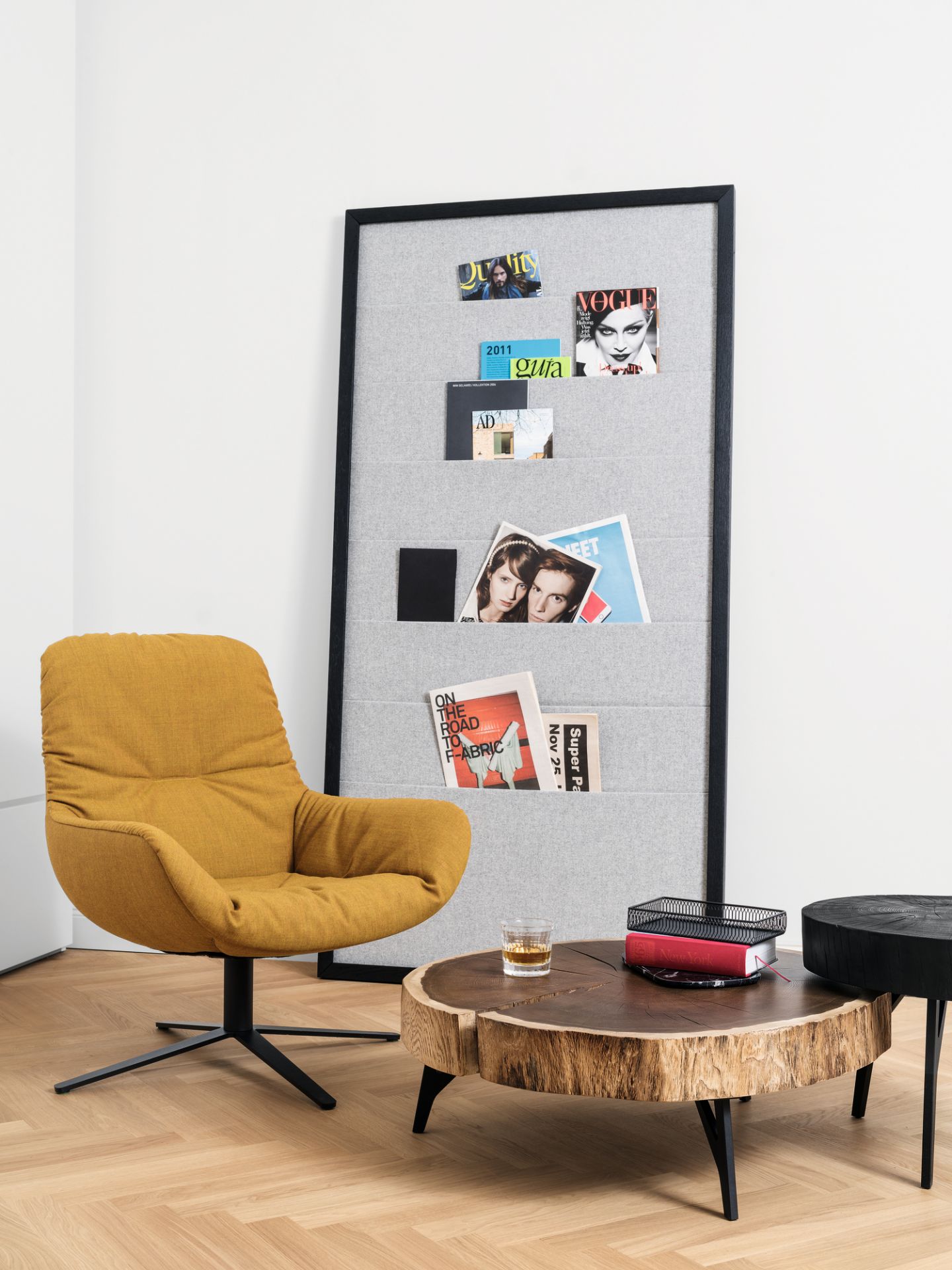 Randerscheinung: BC 05 Stomp Beistelltisch von Janua. Man suche sich einen imposanten Baumstamm aus, schneide aus diesem eine massive Scheibe heraus, platziere diese wiederum auf ein Metallgestell, fertig ist der neue Lieblings-Beistelltisch!