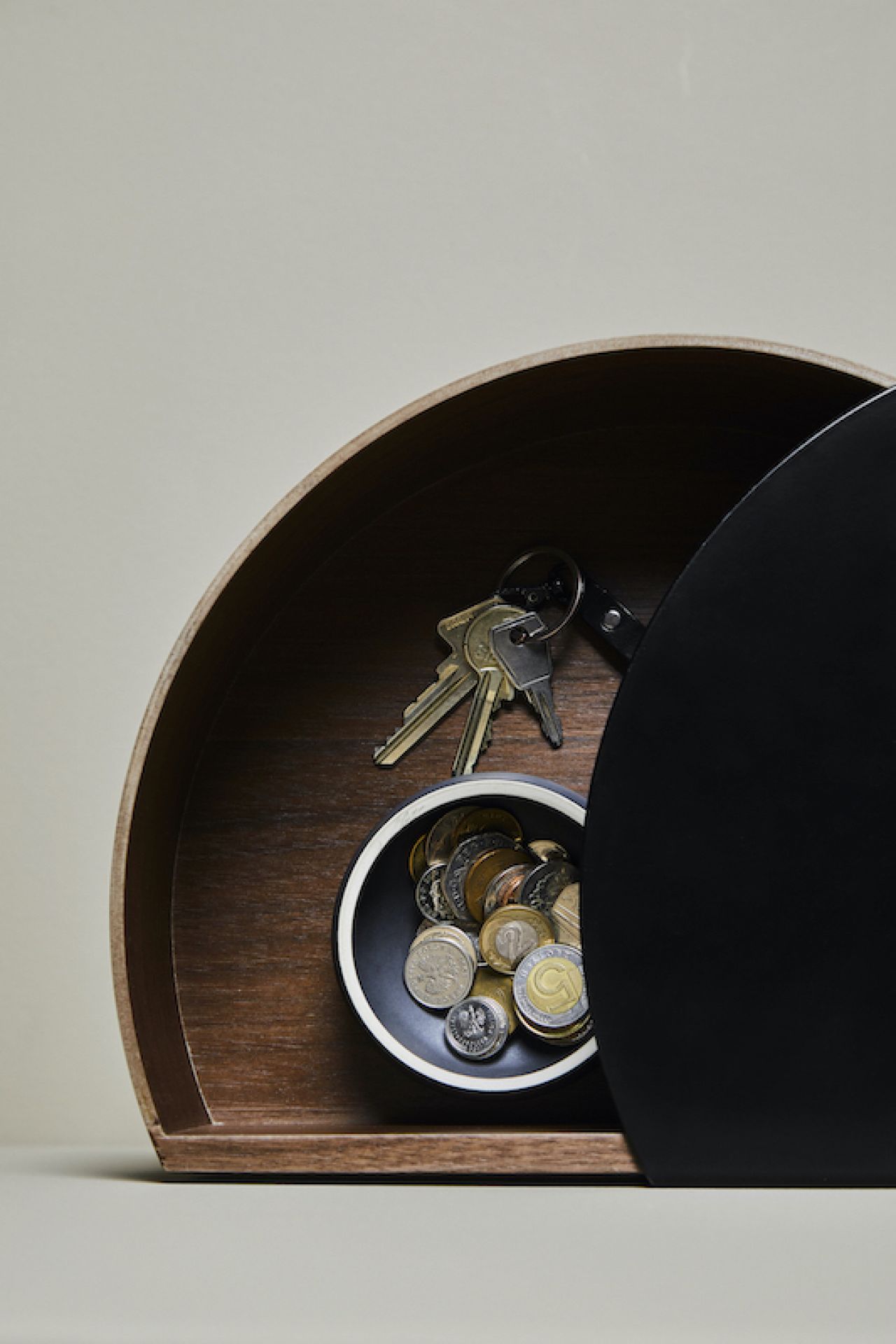 Wallie ist ein echter Tausendsassa: So können Sie die Wandschublade beispielsweise im Flur anbringen, wo sie Schlüssel & Co. sicher beherbergt. Genauso gut eignet sich Wallie jedoch für’s Wohnzimmer, wo das kleine Regal gekonnt Akzente setzt. Diese verdankt Wallie der Materialkombination, die Amalie Skov Rahbæk gewählt hat: Während die Halterung aus schwarz pulverbeschichtetem Metall besteht, ist die Schublade aus Nussbaumholz gefertigt.